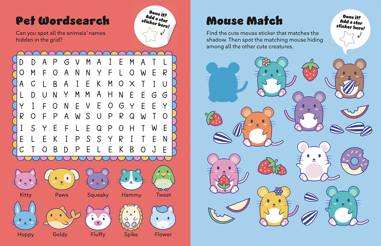 Inside, kids will find spot-the-difference challenges, mazes, word searches and more, all designed for hours of super-cute fun. Use the stickers to complete the activities or decorate your notebooks, folders and favourite things with extra cuteness.